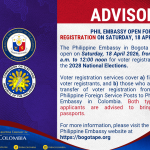 PHIL EMBASSY OPEN FOR VOTER REGISTRATION ON SATURDAY, 18 APRIL 2026
