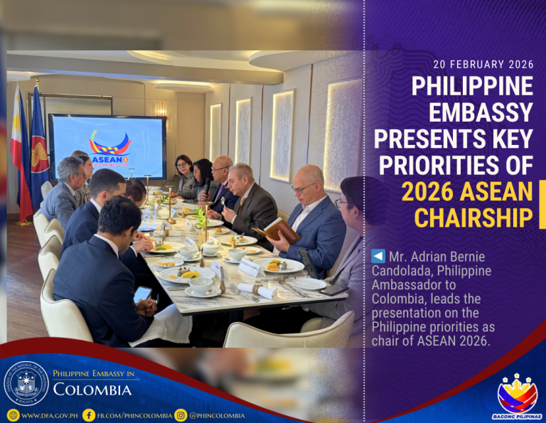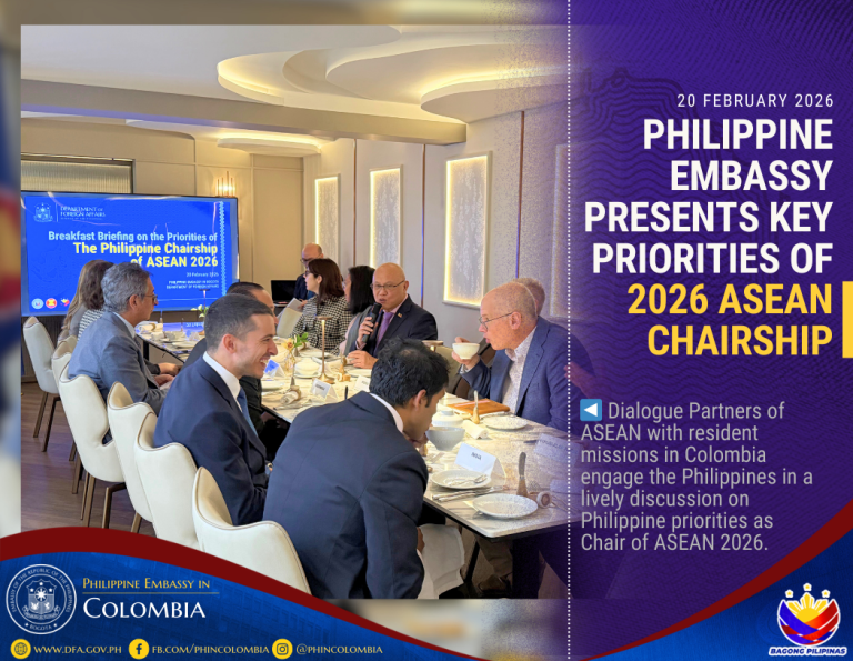 Bogotá, DC, 20 February 2026 – The Embassy of the Republic of the Philippines in Colombia hosted a breakfast briefing on Philippine priorities as the 2026 chair of ASEAN with the Ministry of Foreign Affairs (MFA) of Colombia and representatives of Dialogue Partners of ASEAN with resident missions in Bogota.