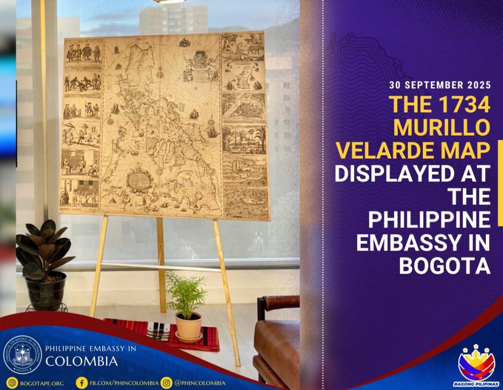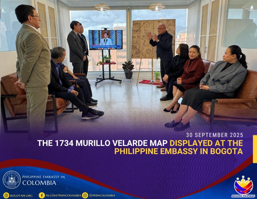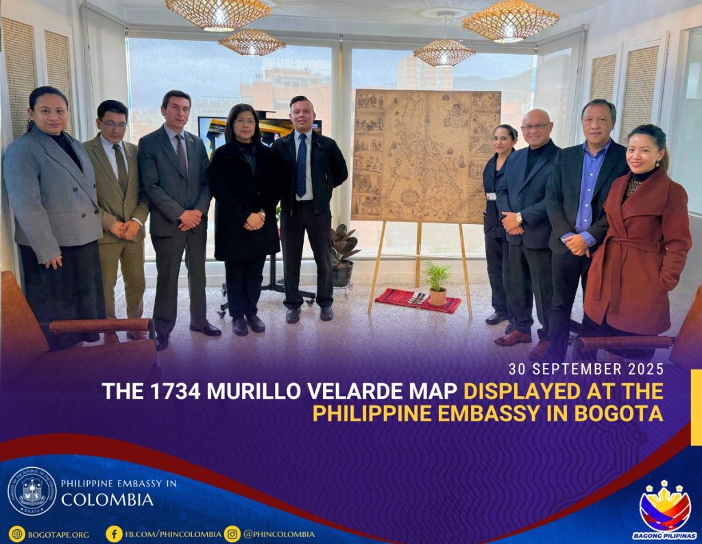The Philippine Embassy in Colombia proudly displayed on 2 October 2025 a replica of the 1734 Murillo Velarde map, which is considered “the first and most important scientific map of the Philippines” as it provided the basis of subsequent maps of the country in the 18th century.